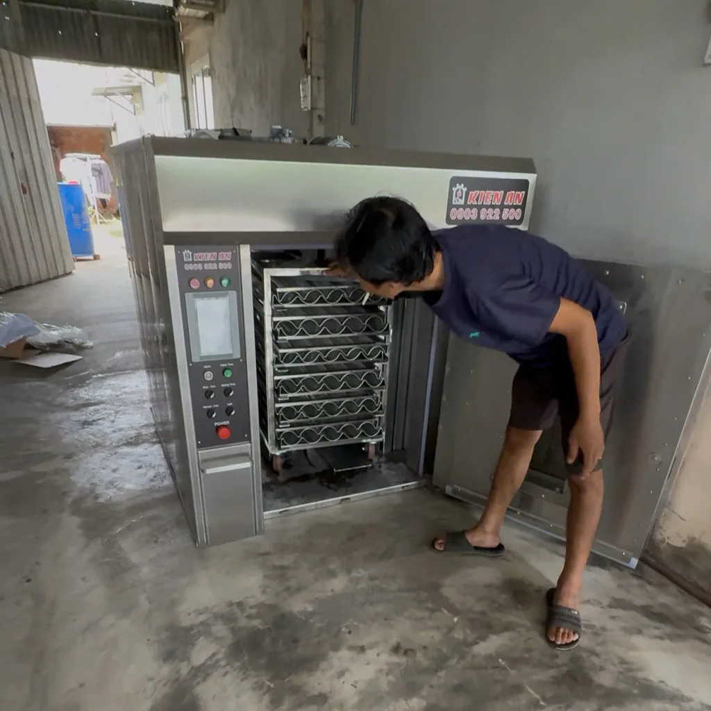 Khách hàng nướng thử mẻ đầu tiên, bánh nở đều – màu đẹp – ổn định nhiệt. Mọi việc tiến hành suôn sẽ thì quý khách hàng mới thanh toán cho Kiến An nhé.