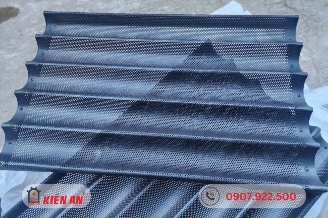 • Một số khay chống dính cao cấp còn được thiết kế với các lỗ thoát khí nhỏ (đặc biệt cho baguette), giúp bánh mì chín đều và có lớp vỏ giòn.