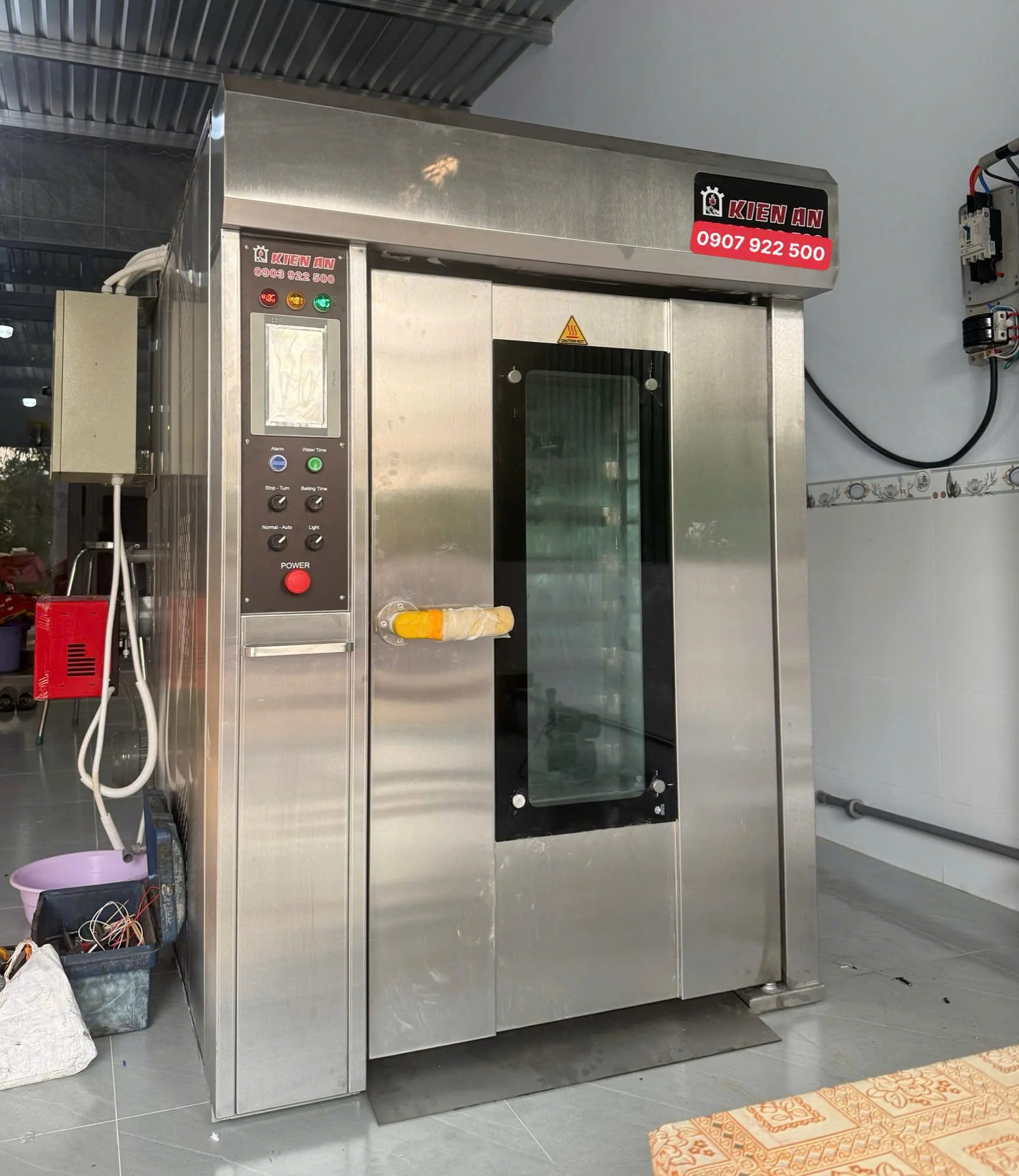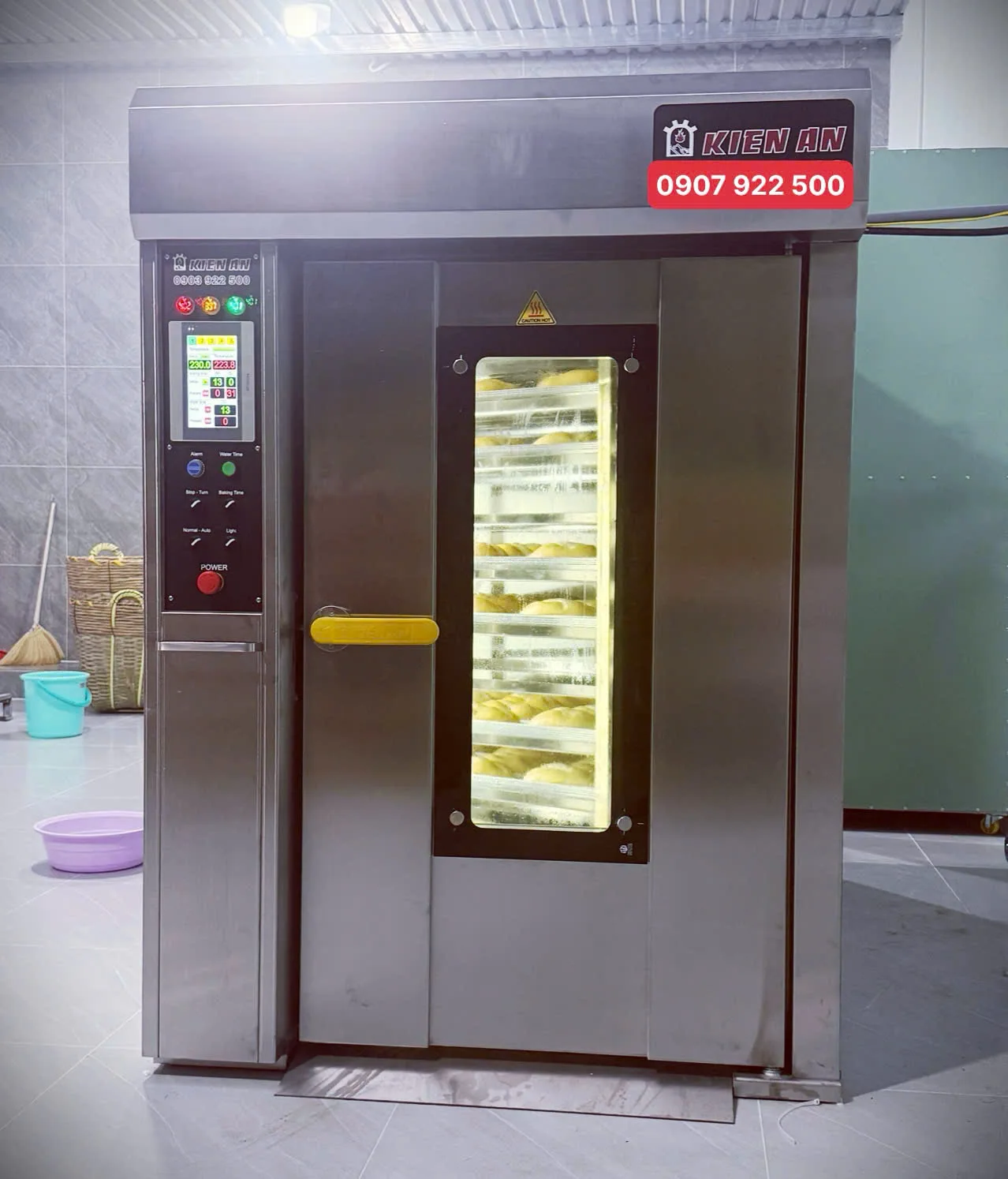 Lò sử dụng inox dày, chống gỉ sét, hệ đối lưu/phun hơi tốt, giúp bánh chín đều.