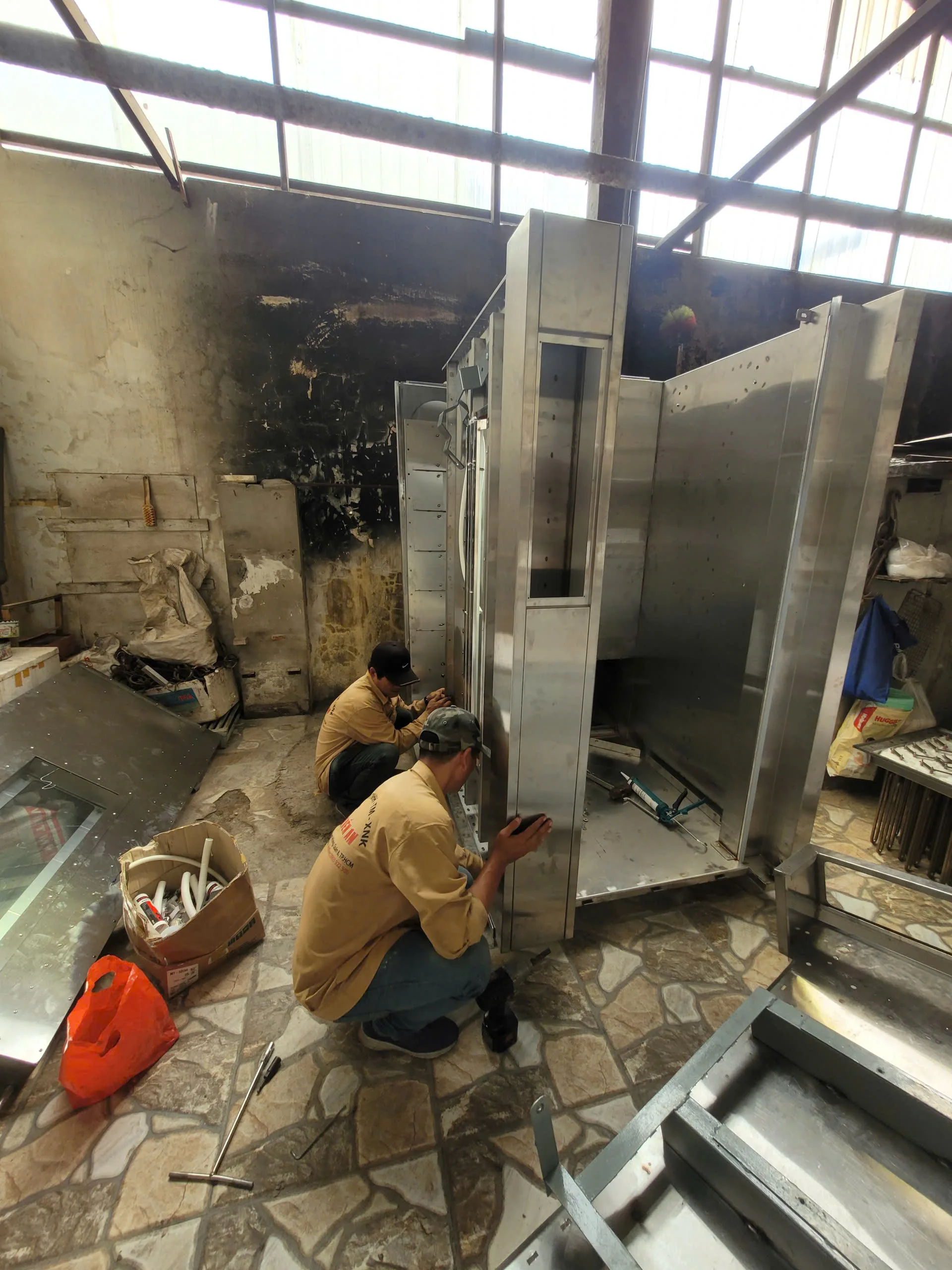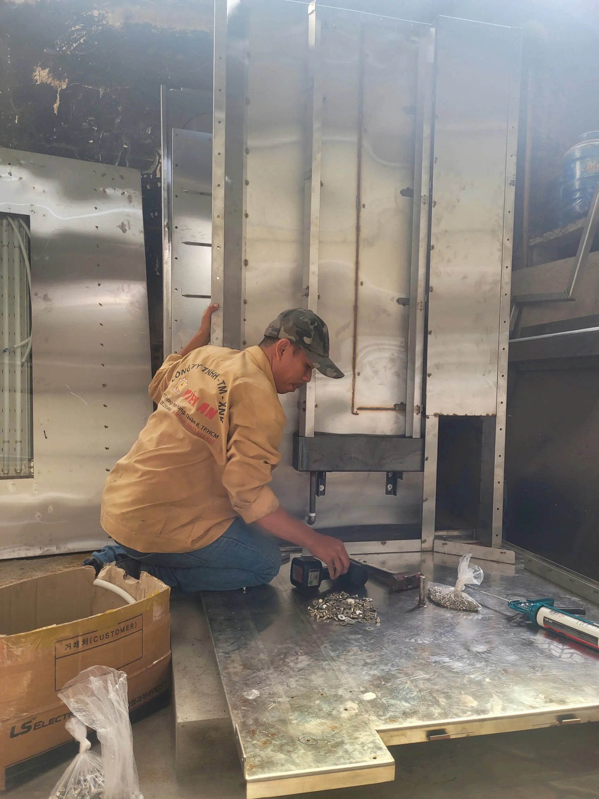 bảo trì định kỳ (vệ sinh, kiểm tra gioăng, mối hàn, cửa, quạt, trục xoay),
