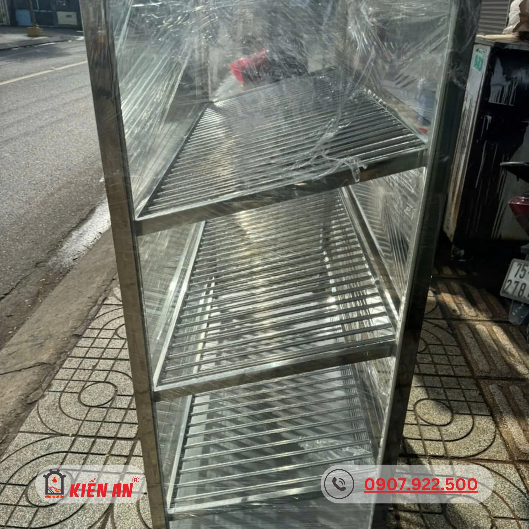Khay inox hoặc lưới inox đặt chắc chắn, không lộn xộn.