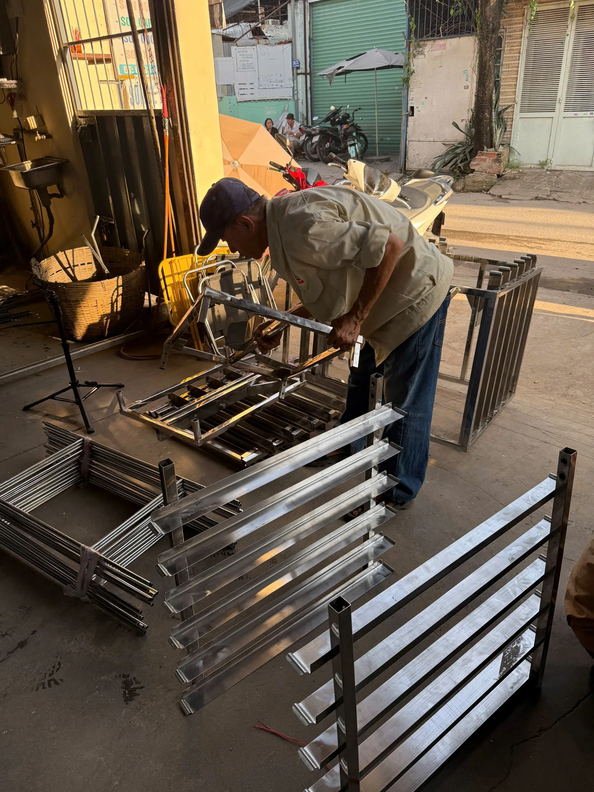 Nếu bạn cần di chuyển lò hoặc sắp xếp lại không gian (xưởng, tiệm, kho…) — một hệ thống “xe + khay rời” hợp chuẩn sẽ dễ tháo, sắp xếp hơn — linh hoạt hơn “giá cố định”.
