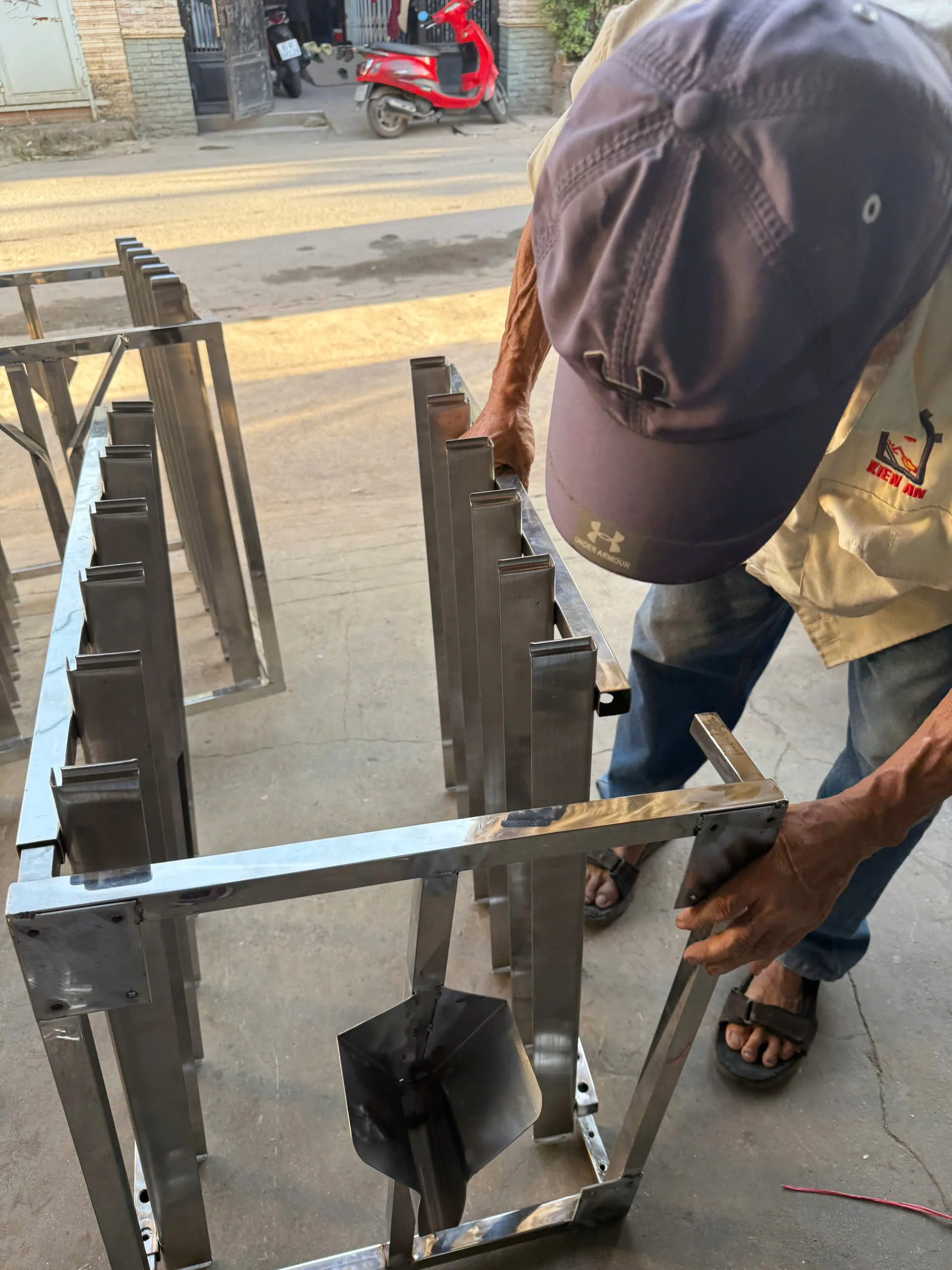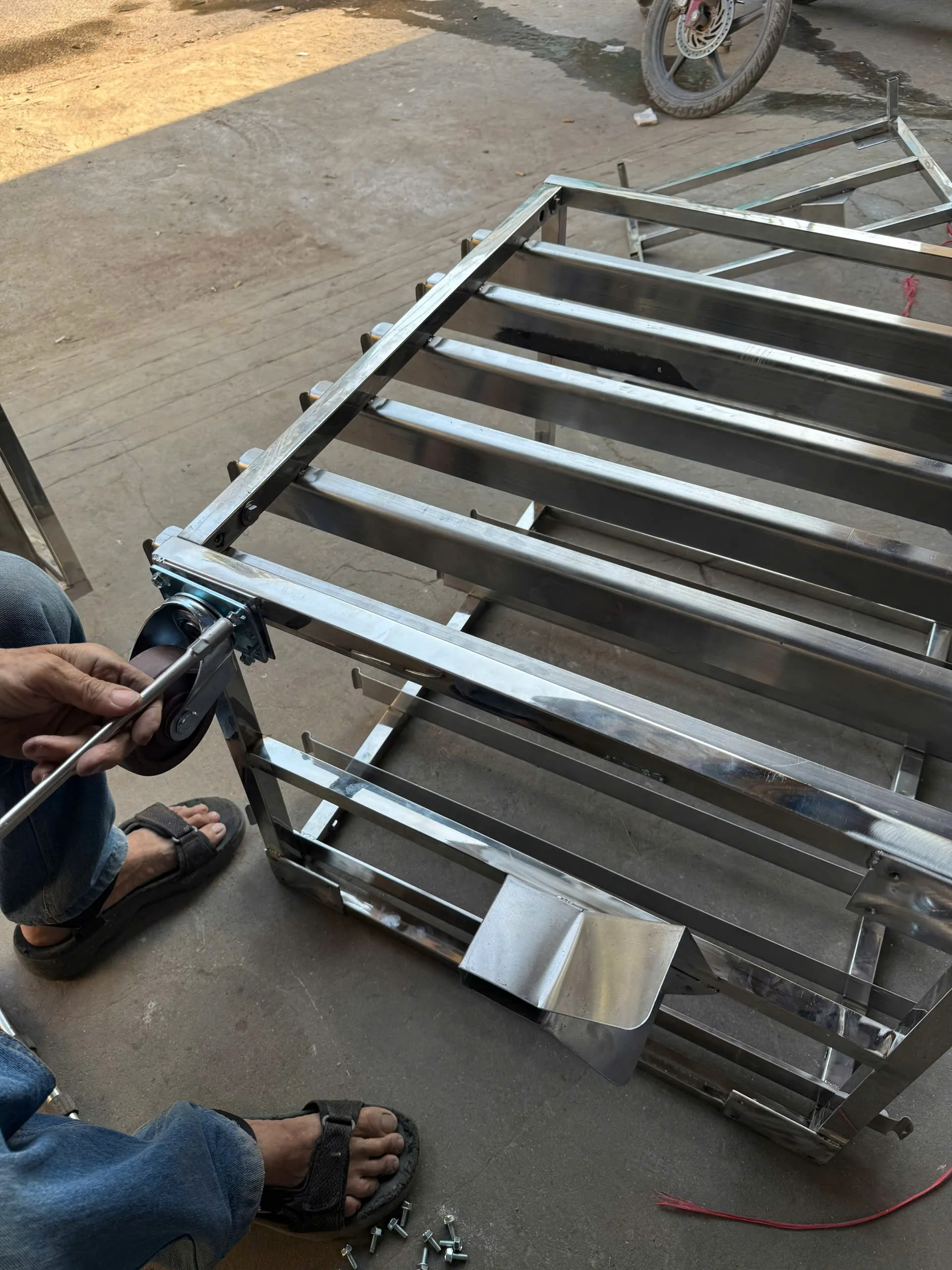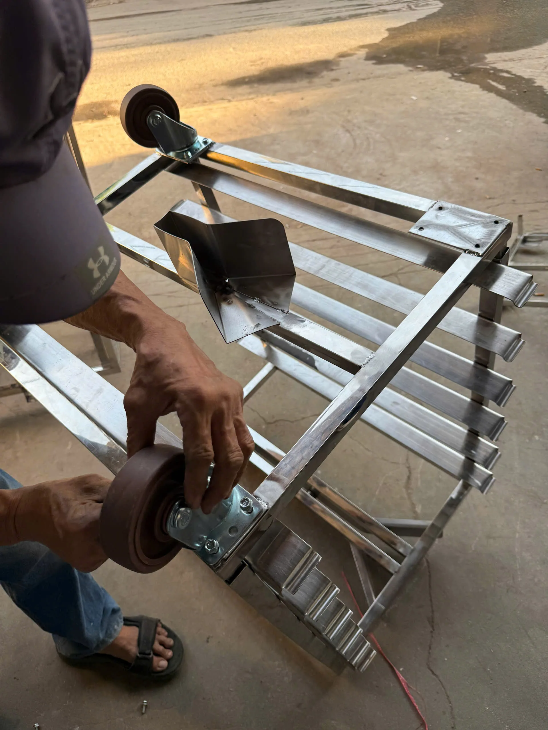 Vật liệu bền bỉ giúp chịu tải tốt — kể cả khi chở nhiều khay nặng hoặc di chuyển nhiều lần mỗi ngày — giúp xe + khay “sống khỏe” lâu dài, không cong vênh, gãy hay xuống cấp nhanh.