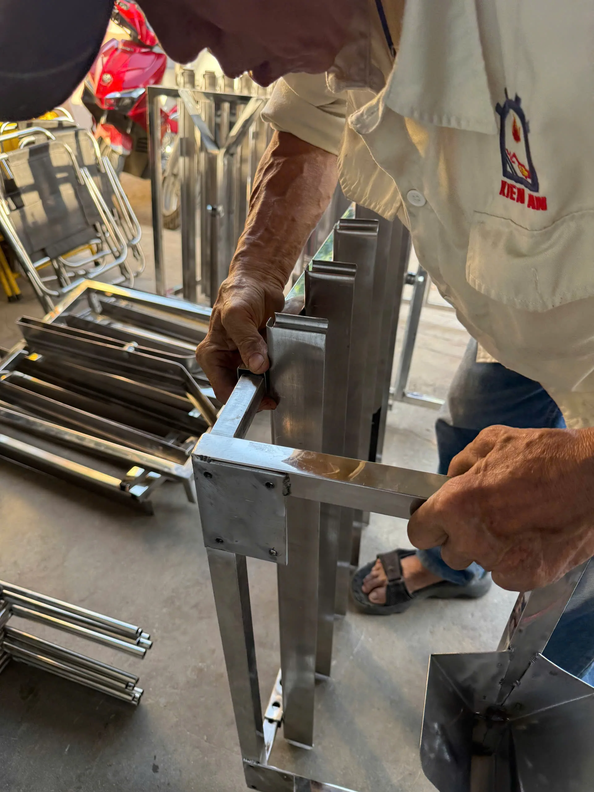 Việc bưng khay nặng, nóng, đi nhiều vòng có thể gây mỏi, nguy cơ bỏng hoặc tai nạn nhỏ. Xe + khay giúp di chuyển nhẹ nhàng, di động dễ dàng, bánh & khay được cố định, giảm rủi ro.